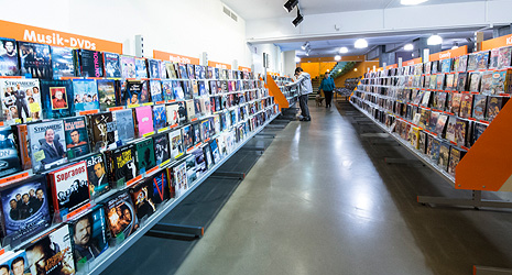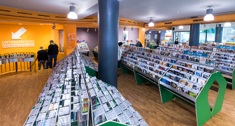 Günstige Aussichten auf unser breites Mediensortiment im Untergeschoss.
